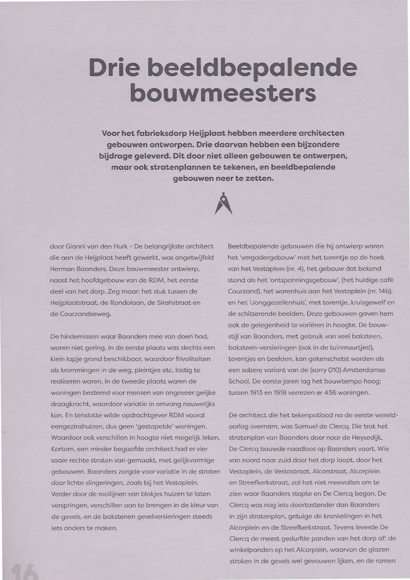 De belangrijkste architect die aan de Heijplaat heeft gewerkt, was ongetwijfeld Herman Baanders. Deze bouwmeester ontwierp, naast het hoofdgebouw van de RDM, het eerste deel van het dorp. Zeg maar: het stuk tussen de Heijplaatstraat, de Rondolaan, de Sirahstraat en de Courzandse weg.